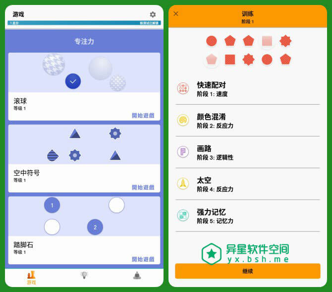 - 14款游戏,共计420关,可以训练记忆力、逻辑性、专注力、反应力和工作速度