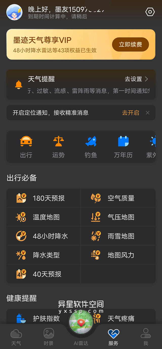 出行、钓鱼、亲子、运势四大场景板块,更懂你的气象服务,用气象简化你的生活。