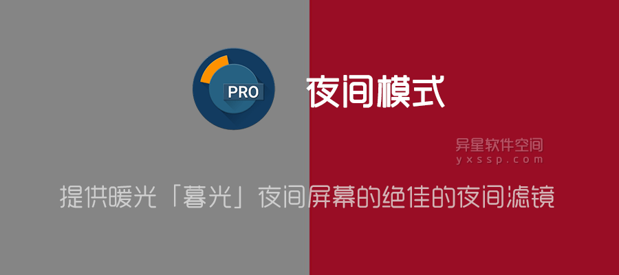 夜间模式——夜间蓝光滤镜「Blue Light Filter & Night Mode – Night Shift Pro」是一个提供暖光(暮光)夜间屏幕的绝佳的夜间滤镜(调色应用程序),通过消除屏幕发出的浅蓝色波长光来保护眼睛,给您愉快的夜晚读书体验并治疗失眠。利用“夜间模式”的防眩光功能可以有效缓解眼睛疲劳并保护眼睛免受蓝光暴露,防止扰乱昼夜节律、失眠、焦躁、慢性偏头痛、慢性头痛、白内障等等。