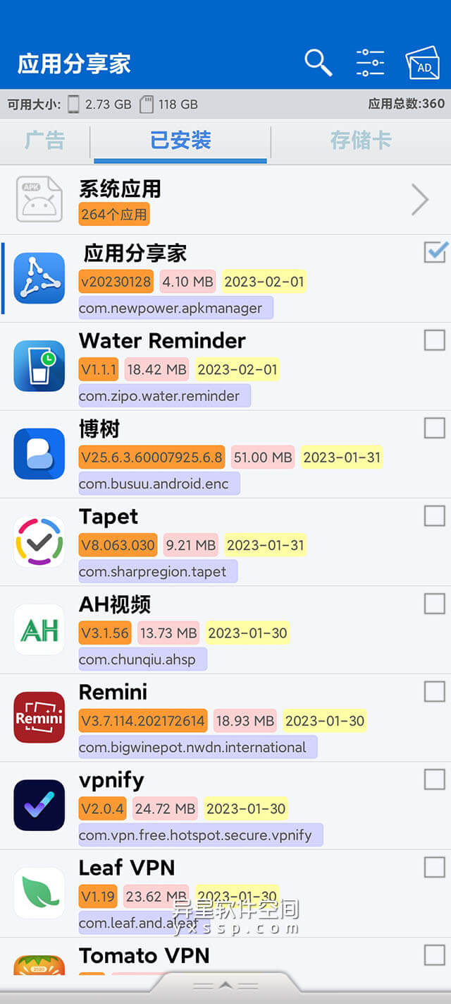 应用分享家是一款能全能的应用管理软件,用于管理未安装的应用程序包和已安装应用。该应该支持: