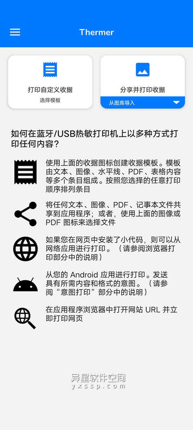 Thermer「POS 蓝牙热敏打印机」Bluetooth Mini Thermal Printer 用于收据、发货标签、POS USB 蓝牙热敏打印机的迷你打印机应用程序,在蓝牙/USB 热敏打印机上打印自定义收据。完全可定制的收据制作器和移动 POS 热敏打印应用程序。