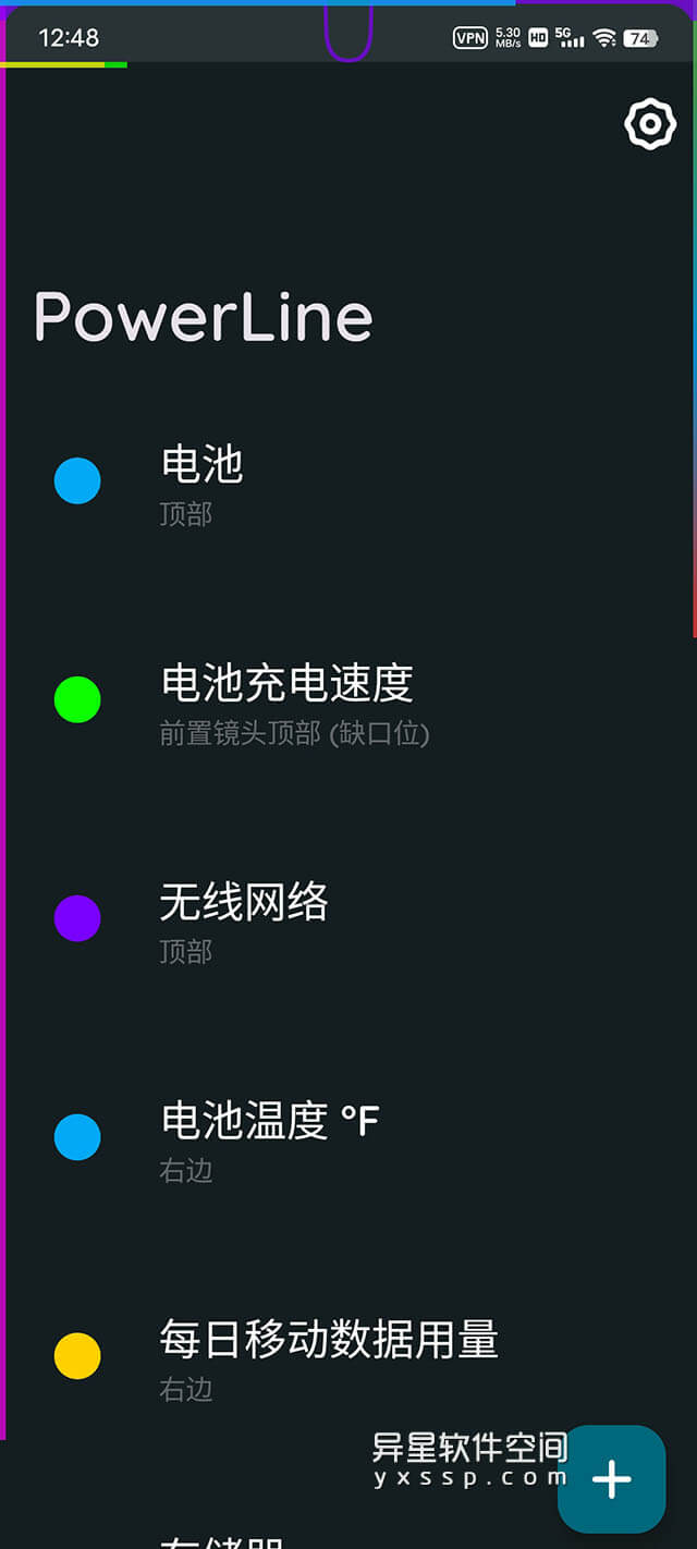 PowerLine 是一款在屏幕边缘用不同色条清晰显示电池、处理器、内存器、信号、存储器、无线网络、网络使用量、短讯等数据…比起小部件还更实用!