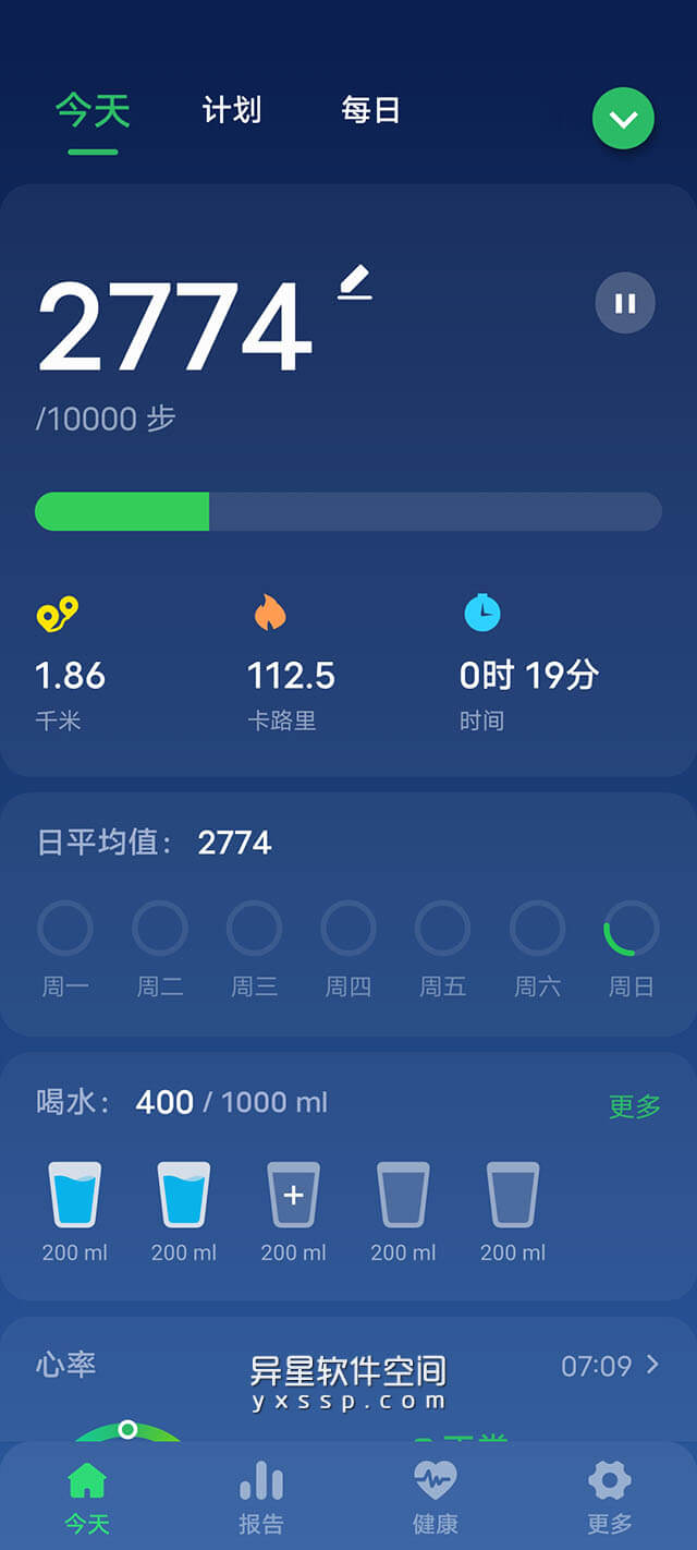 您可以随时暂停或开始计步以节省电量。一旦暂停,计步器将停止在后台刷新数据。您也可以重置今日步数,从0开始计数。